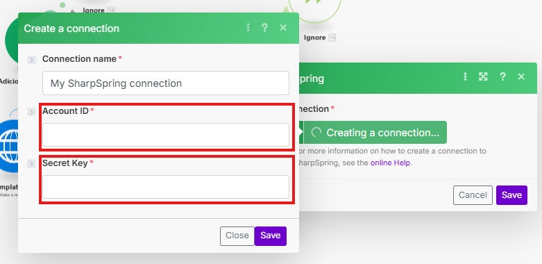 O módulo “Adiciona evento - Vida do Lead” é responsável por salvar um evento de logCall diretamente na vida do lead. Para isso, cria-se uma conexão com a conta da Constant Contact, utilizando os dados de API Pública da mesma (Account ID e Secret Key). Mais informações sobre como encontrar as informações da API Pública estão disponíveis neste artigo.
